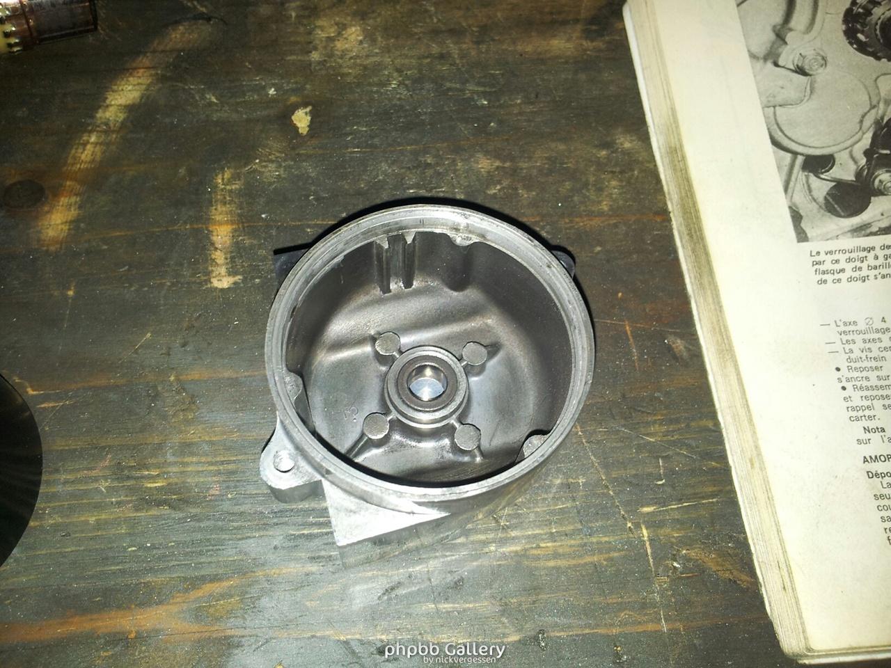 - ensuite on a demonté les démarreurs du moteur et fais tourner le pignon de demareur a l'aide de l'axe du demareur. Dans un sens ca bloque, dans l'autre ça tourne mais c'est dur, en même temps on est pas ds une position idéale pour que ça tourne.